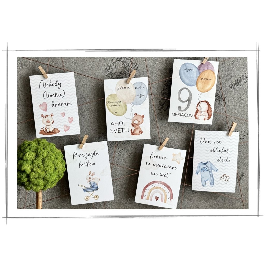 Kartičky sú krásne ilustrované, z tvrdého papiera. Zachytávajú najdôležitejšie míľniky bábätka. Odporúčam 👌❤️